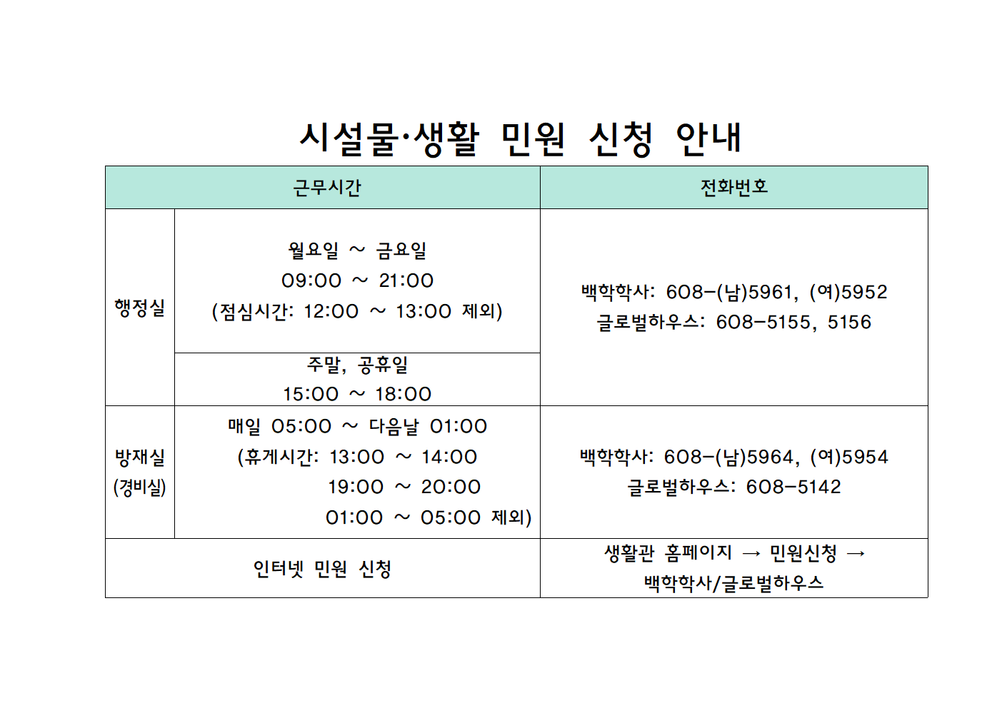 2025학년도 1학기 생활관 관리비 납부 및 환불기준표