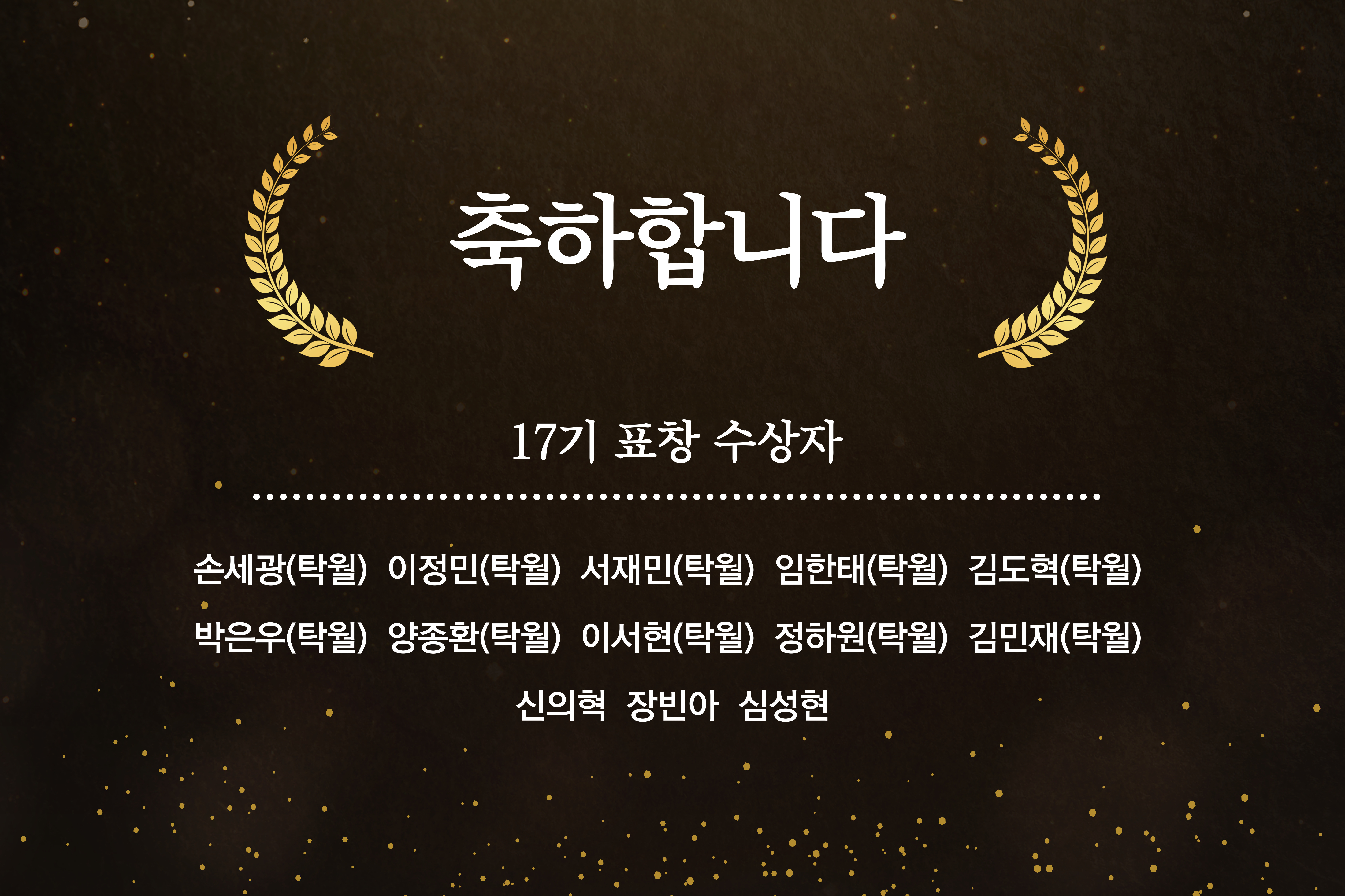 손세광(탁월), 임한태(탁월), 양종환(탁월), 이정민(탁월), 김도혁(탁월), 이서현(탁월), 서재민(탁월), 박은우(탁월), 정하원(탁월), 김민재(탁월), 신의혁, 장빈아, 심성현