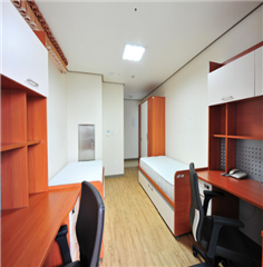 ∙ 지상 8층, 9층 2동 ∙ 사생실 수 : 총 513실 1,022명 수용 ※ 남학생(510명), 여학생(512명) ∙ 식당 운영 : 점심(11:30 ∼ 14:00), 저녁(17:00 ∼ 18:30) ∙ 편의시설 : 정보검색실, 체력단련실, 매점, 독서실, 식당, 휴게실, 세탁실 등 |